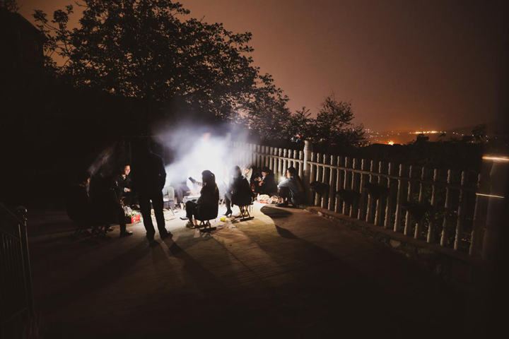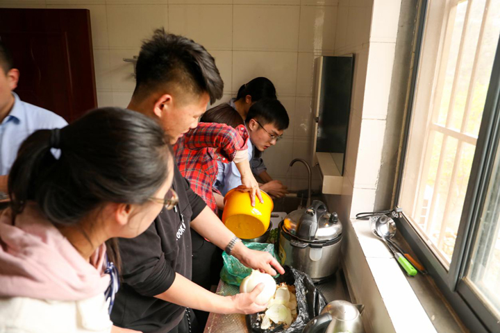 下午四点,稍作休整之后,同事们麻利地卸下塞了满满几个后备箱的物料,着手准备一场丰盛的晚宴。